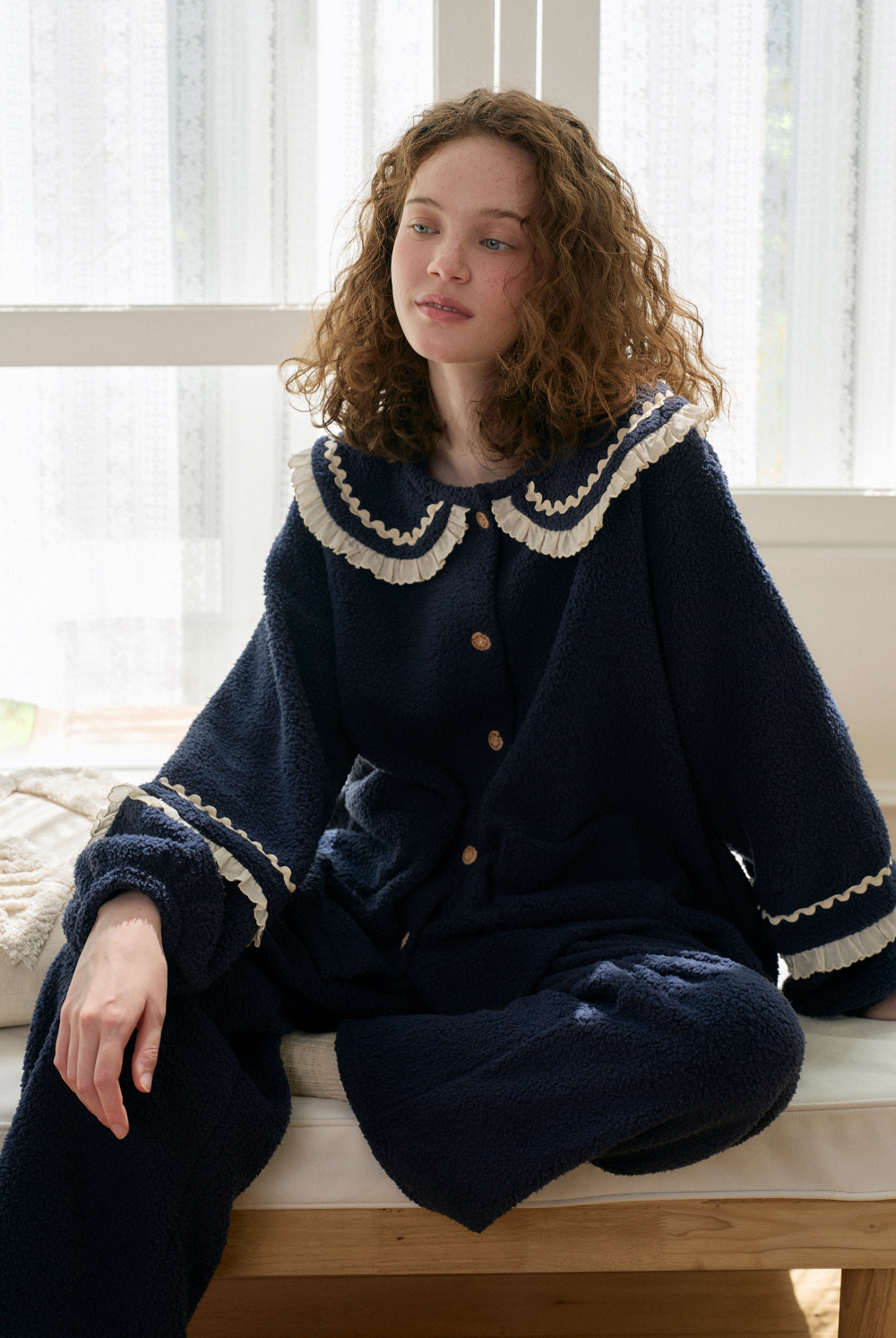 ULLALA MOLLY Long-sleeved Two-piece|Soft fleece warmth with vintage lace charm