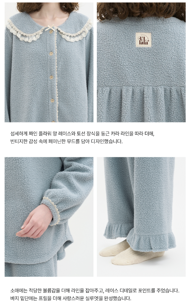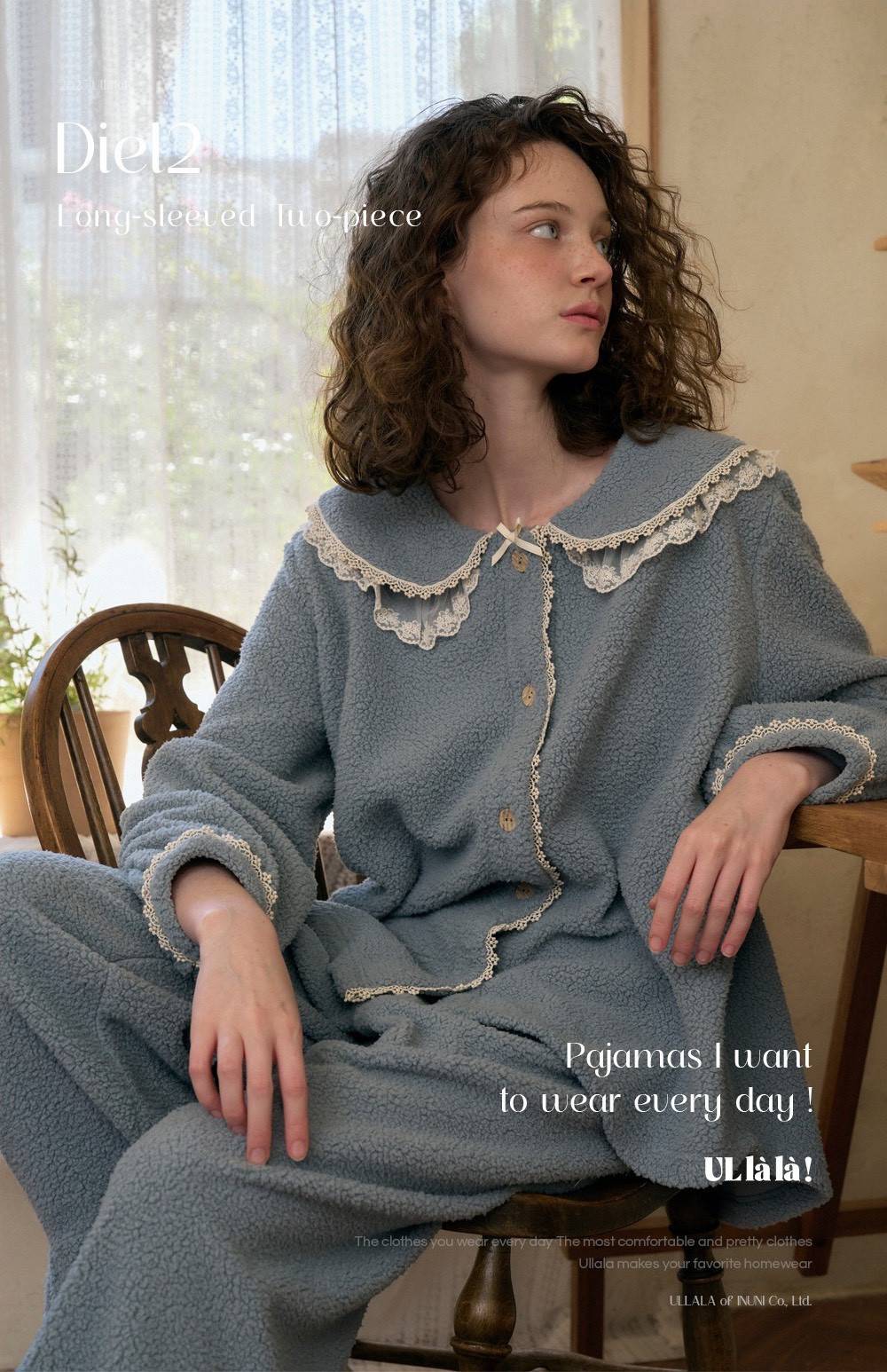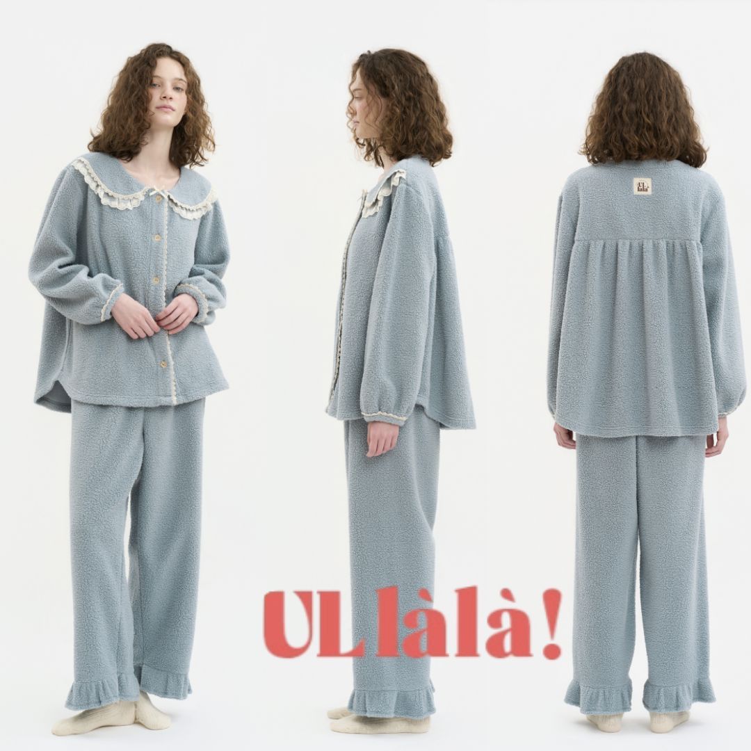 ULLALA 柔霧靜藍珊瑚絨睡衣套裝|韓國熱賣回歸|北境寓所 系列