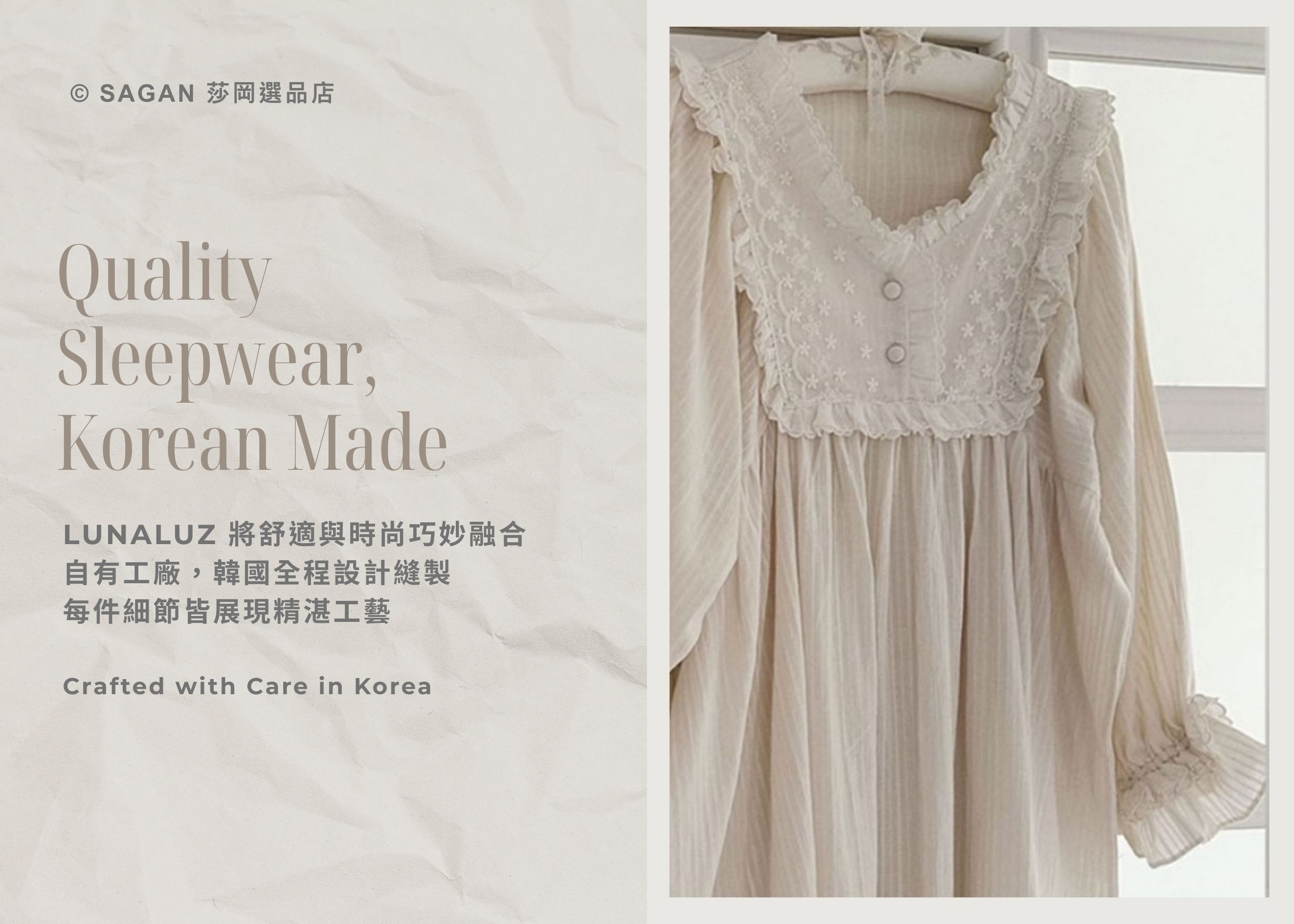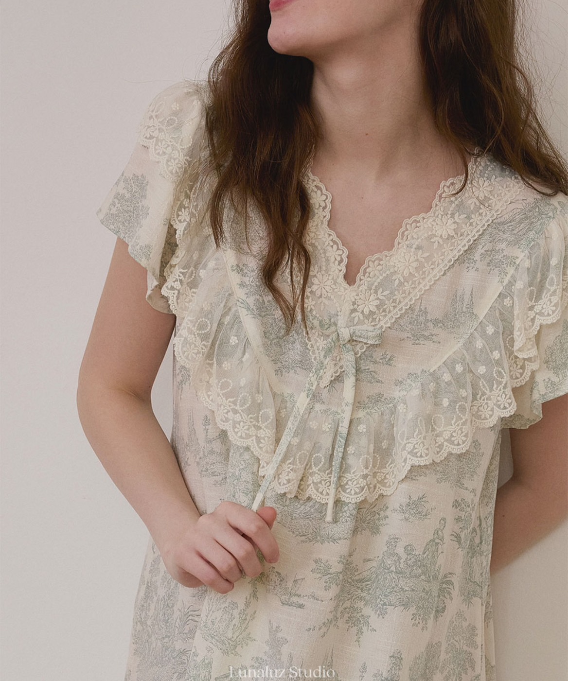 LAUALUZ蕾絲連身睡裙,展現濃厚的法式復古風情,