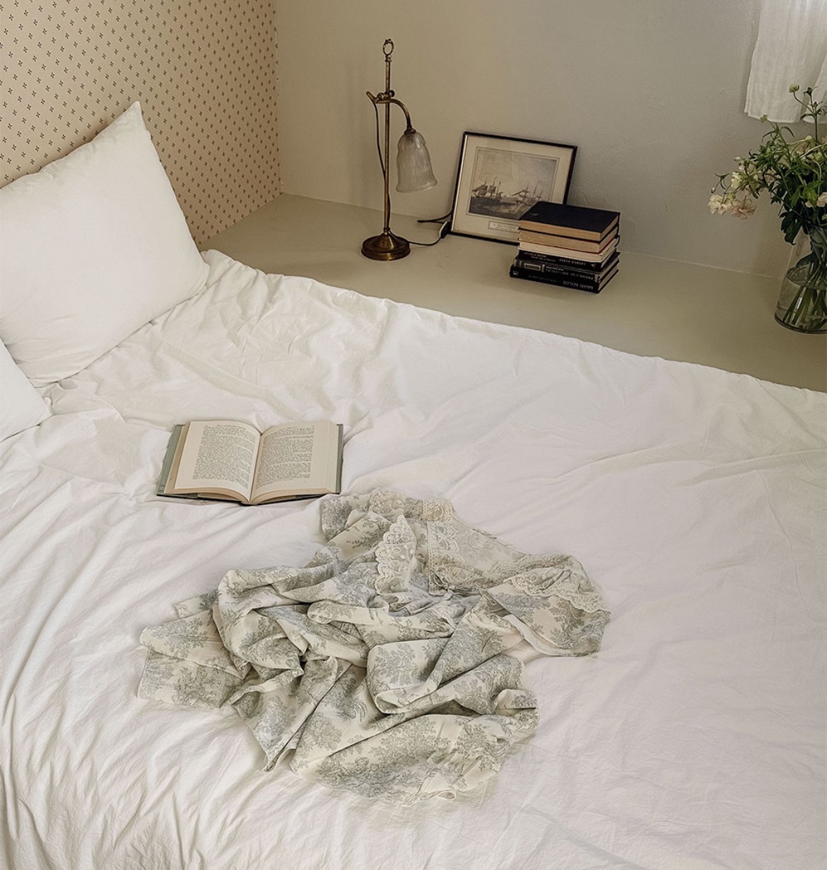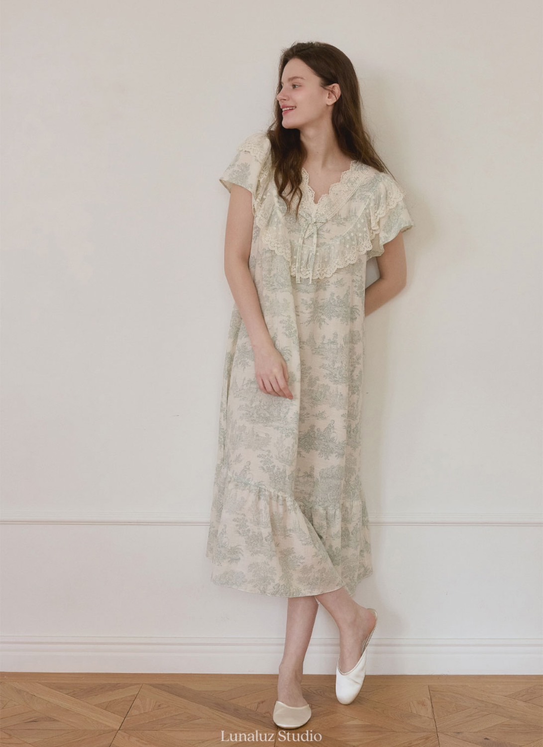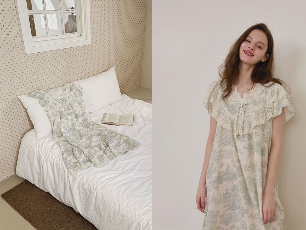 裙身寬鬆且輕盈,整體版型修飾身形,提供穿著的舒適體驗,在家中猶如置身法式莊園般的慵懶美感。