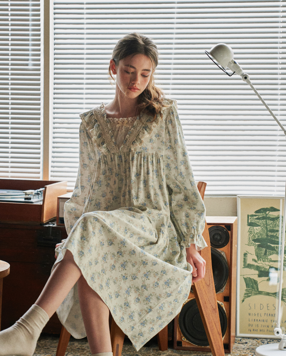 這是一件專屬於悠然時光的睡衣洋裝,讓慵懶與優雅共存。