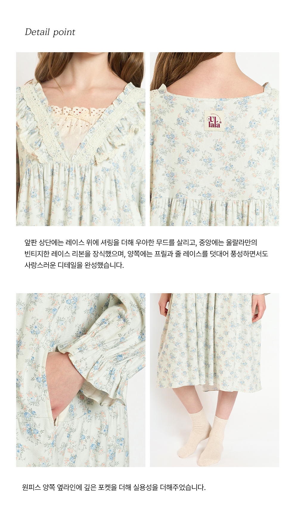 ULLALA 米杏刷絨純棉睡衣洋裝|口袋設計|韓國2025新款