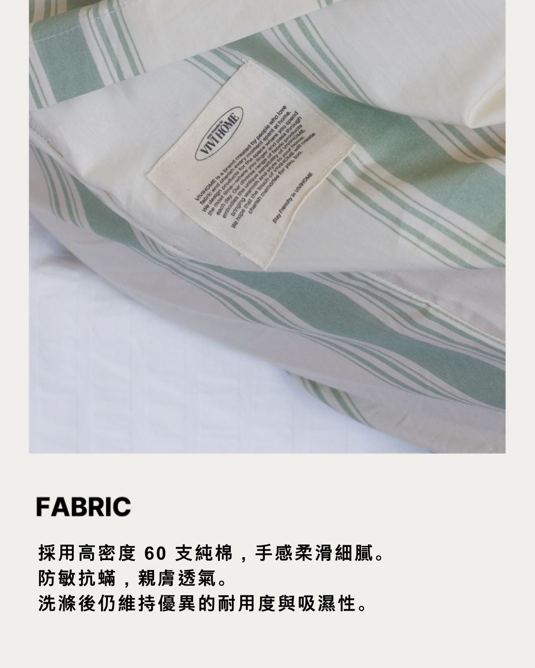 手感柔滑細膩、親膚透氣、抗敏抗蟎。