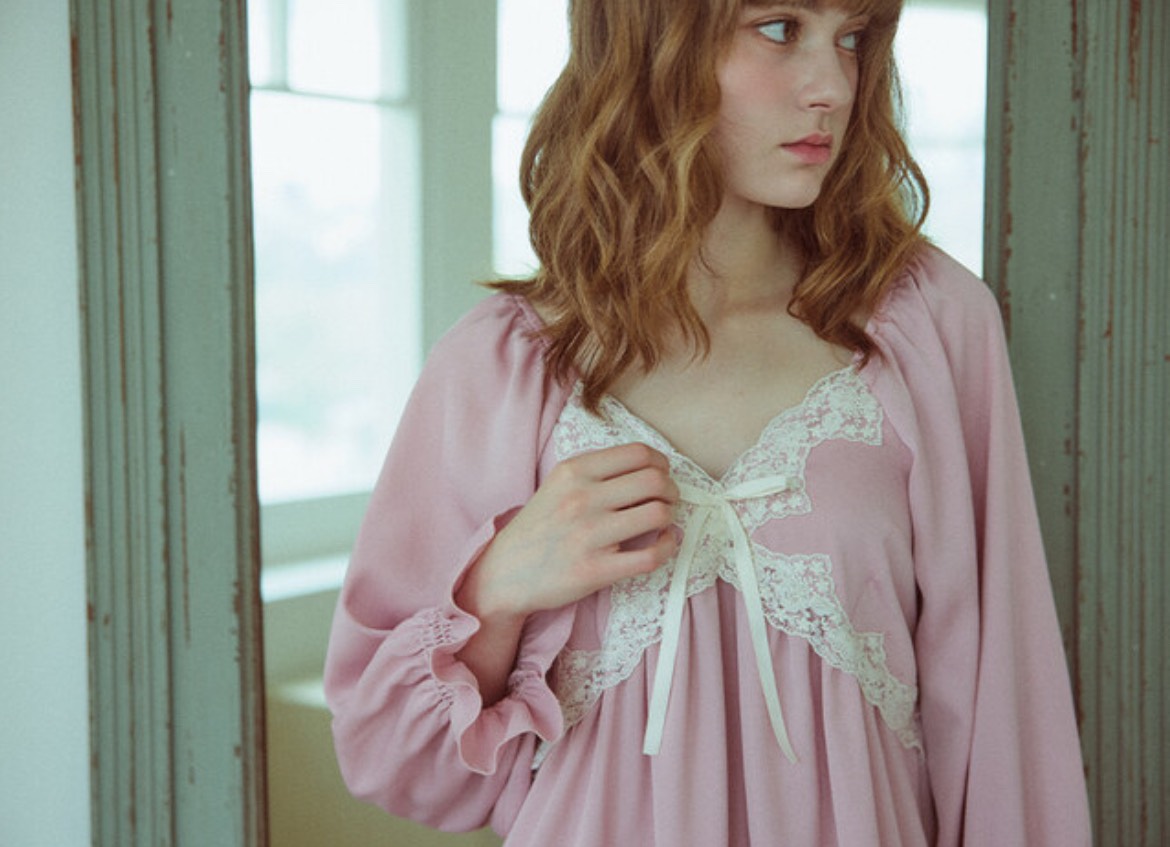 細緻的蕾絲沿著領口延伸,視線被自然地帶往肩頸線條,