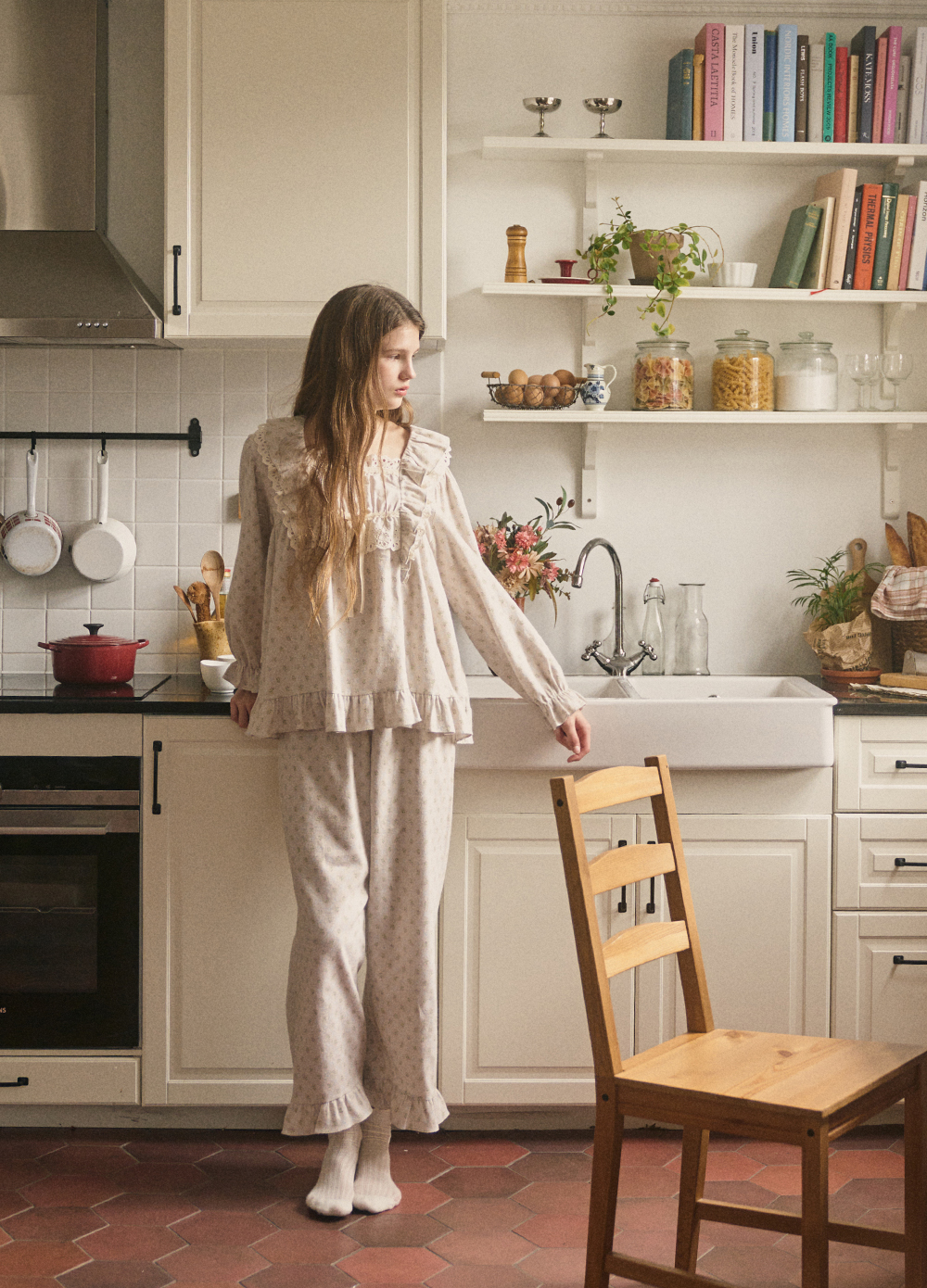 Lorenz 灰米杏兩件式睡衣,以柔霧灰米杏為底,