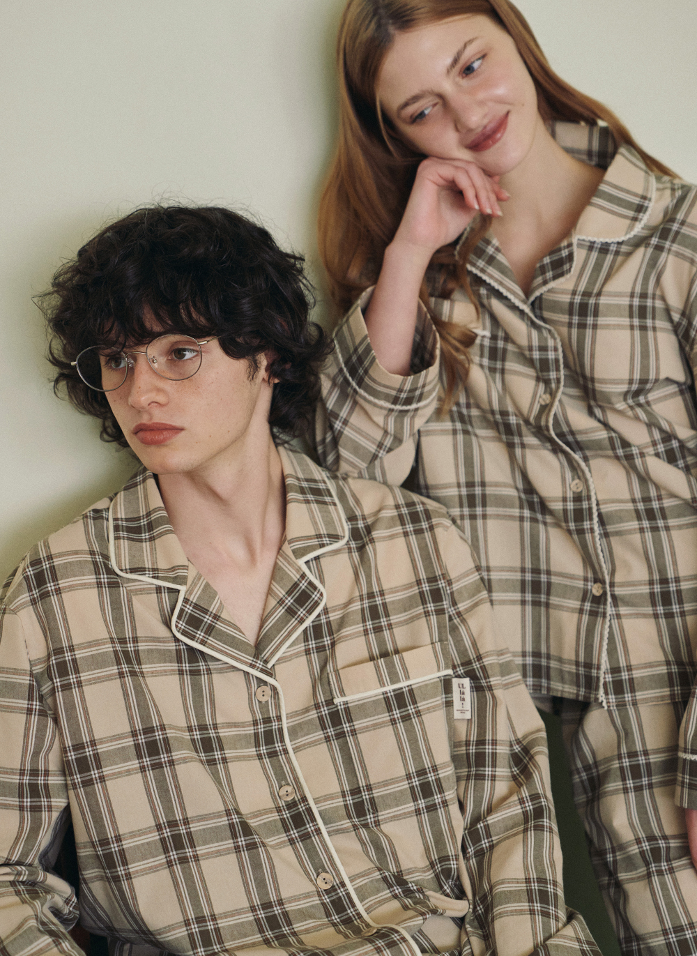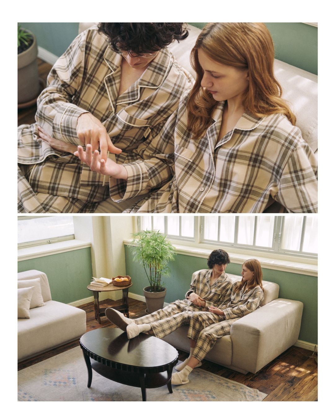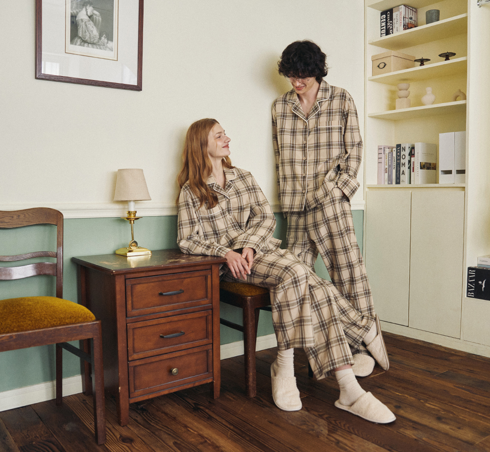 米棕格紋睡衣套裝,柔和而帶點復古氣息,