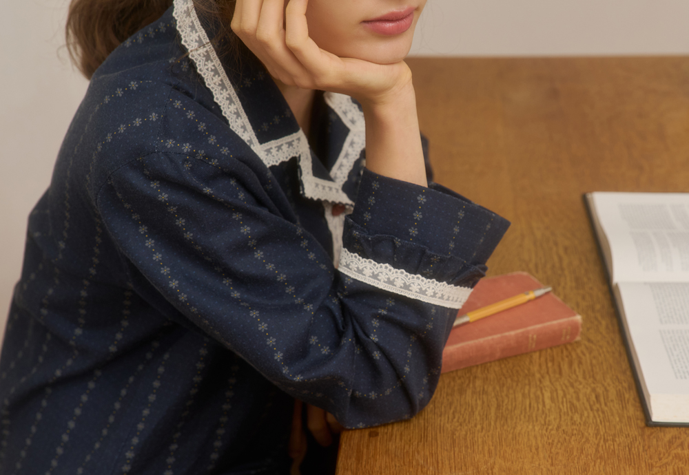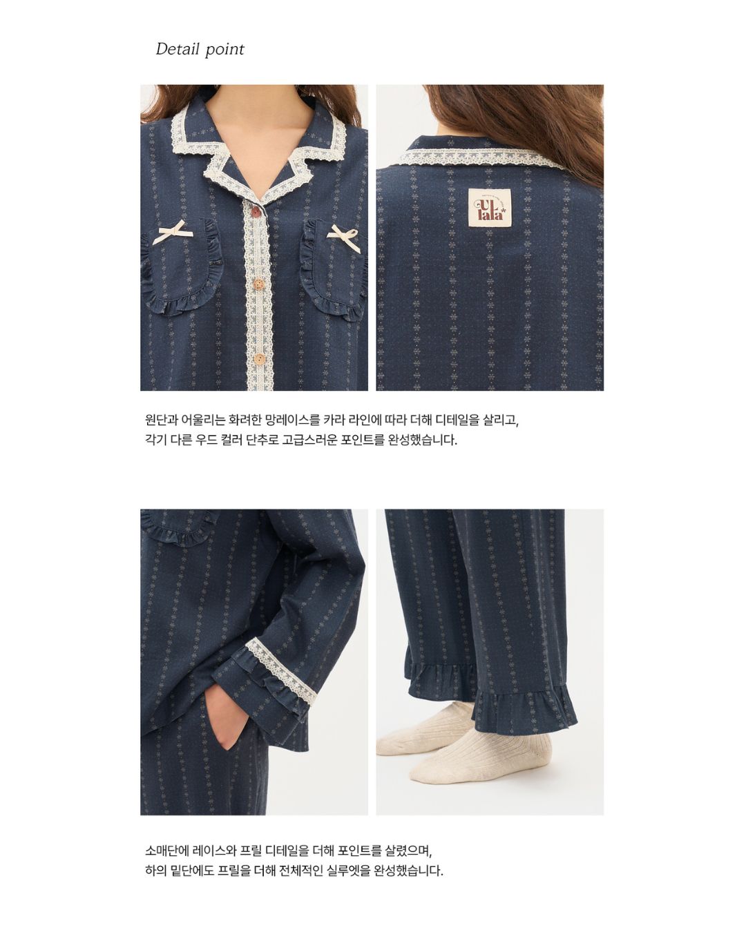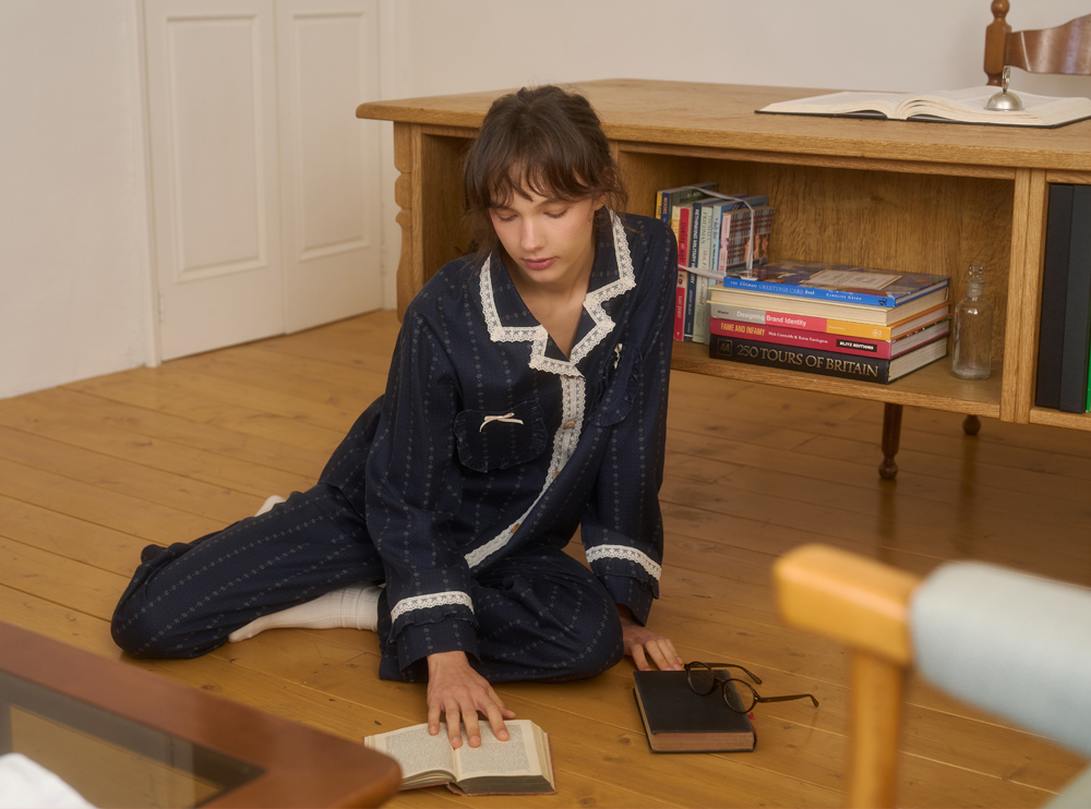 ULLALA 靛藍夜讀蕾絲睡衣套裝| Navy