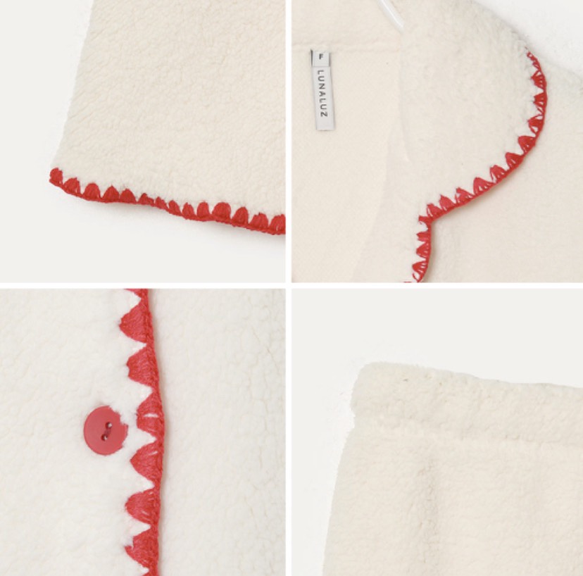 LUNALUZ 經典滾邊羊羔絨睡衣套裝