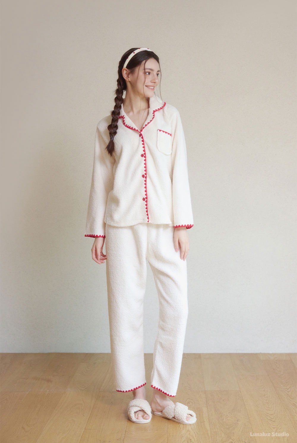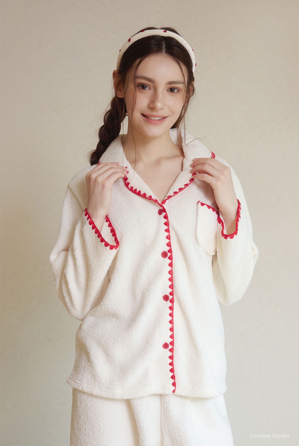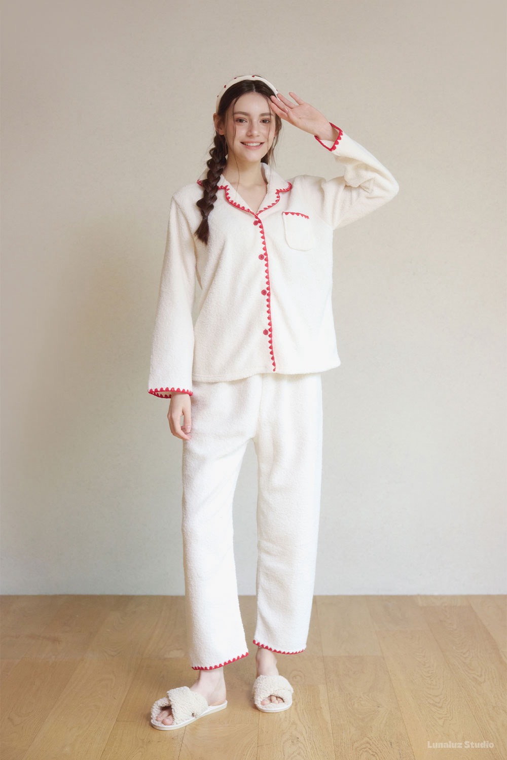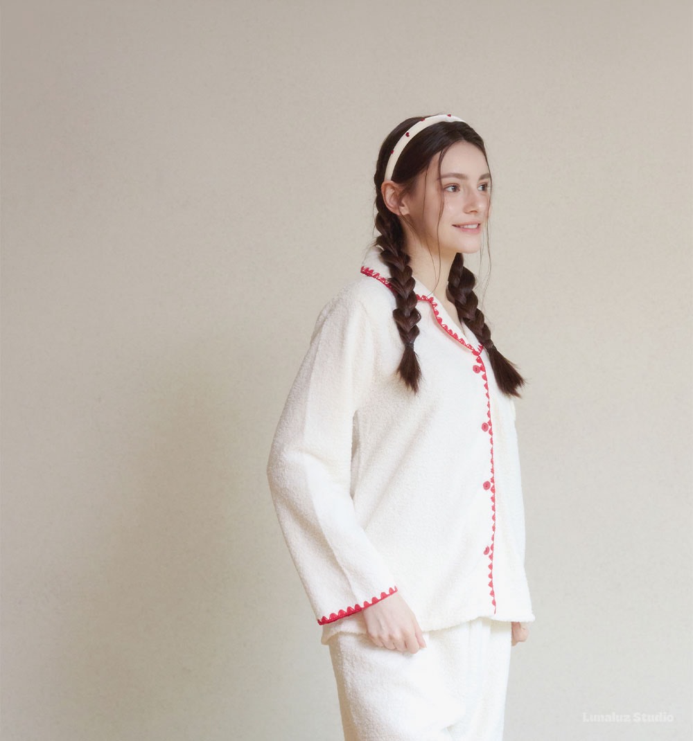 LUNALUZ Classic Fleece Trim Pajama|溫柔奶白 × 立體紅邊/黑邊