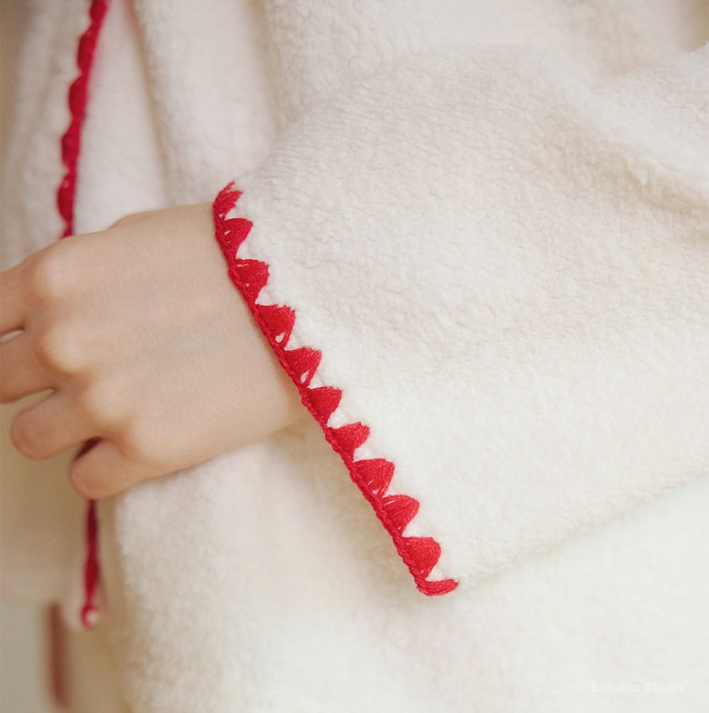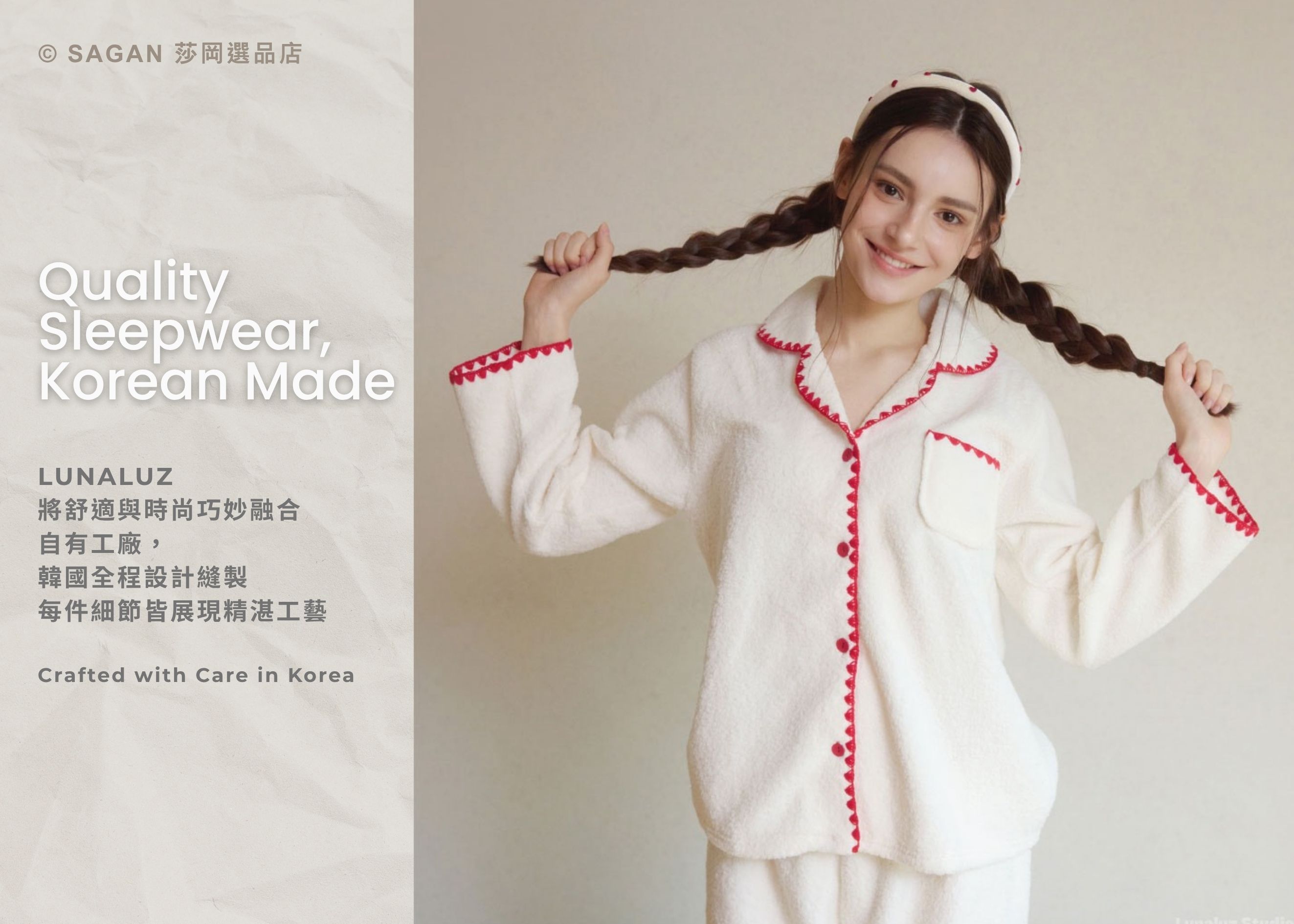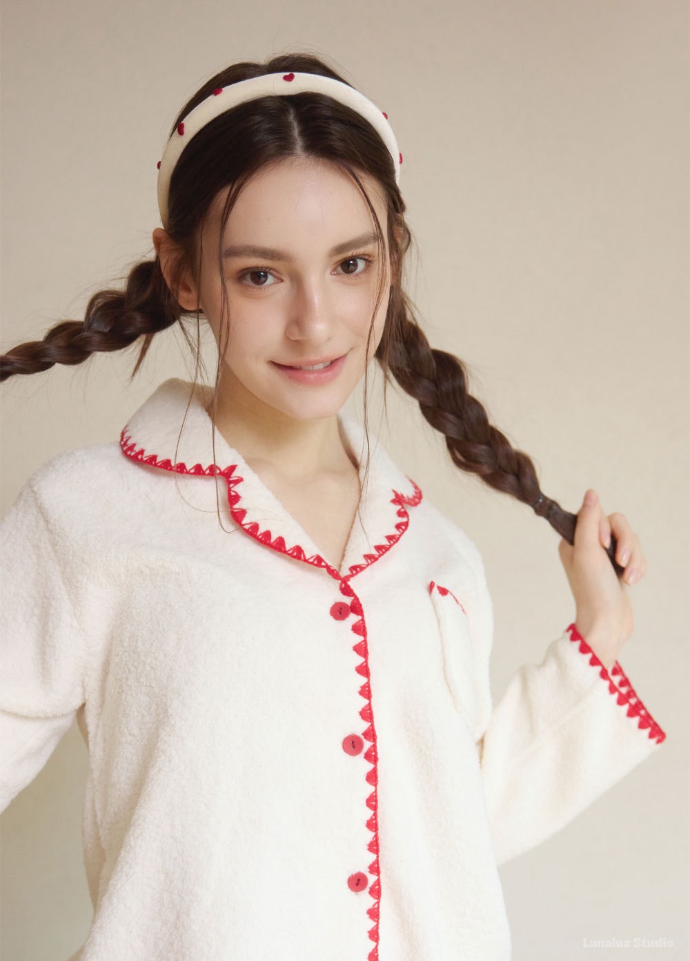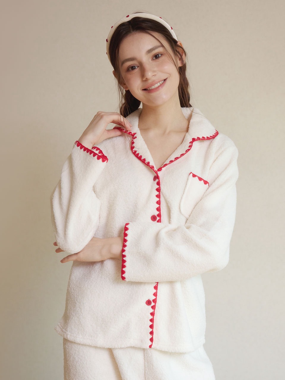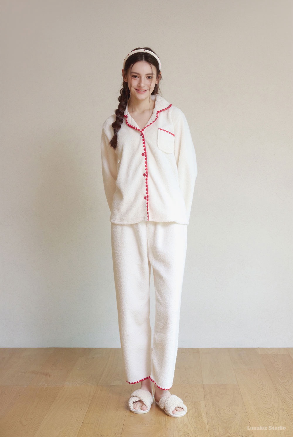 LUNALUZ Classic Fleece Trim Pajama|溫柔奶白 × 立體紅邊/黑邊
