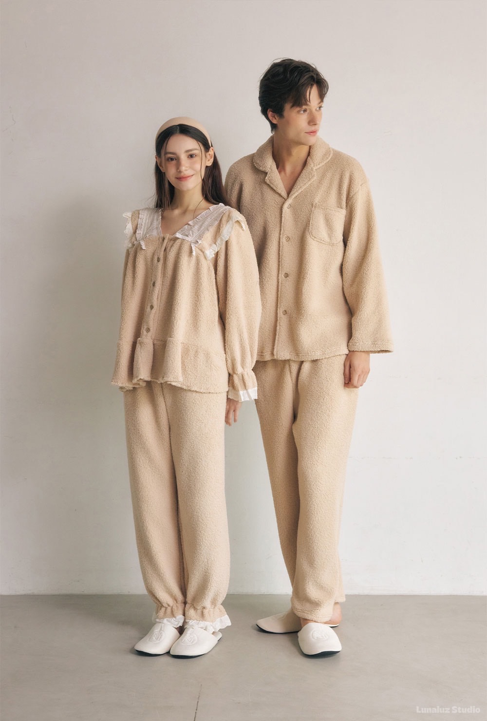 整套配色:奶霜米杏主色,與白色蕾絲對比乾淨,四季居家都耐看。
