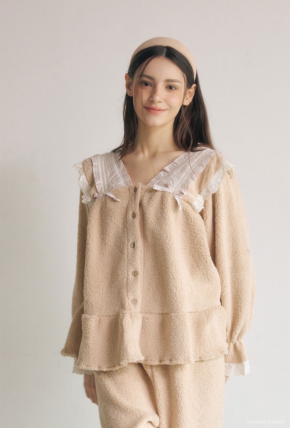 袖口/褲口蓬鬆荷葉邊:內層細蕾絲+外層鬆抽,視覺更輕盈,穿脫俐落。