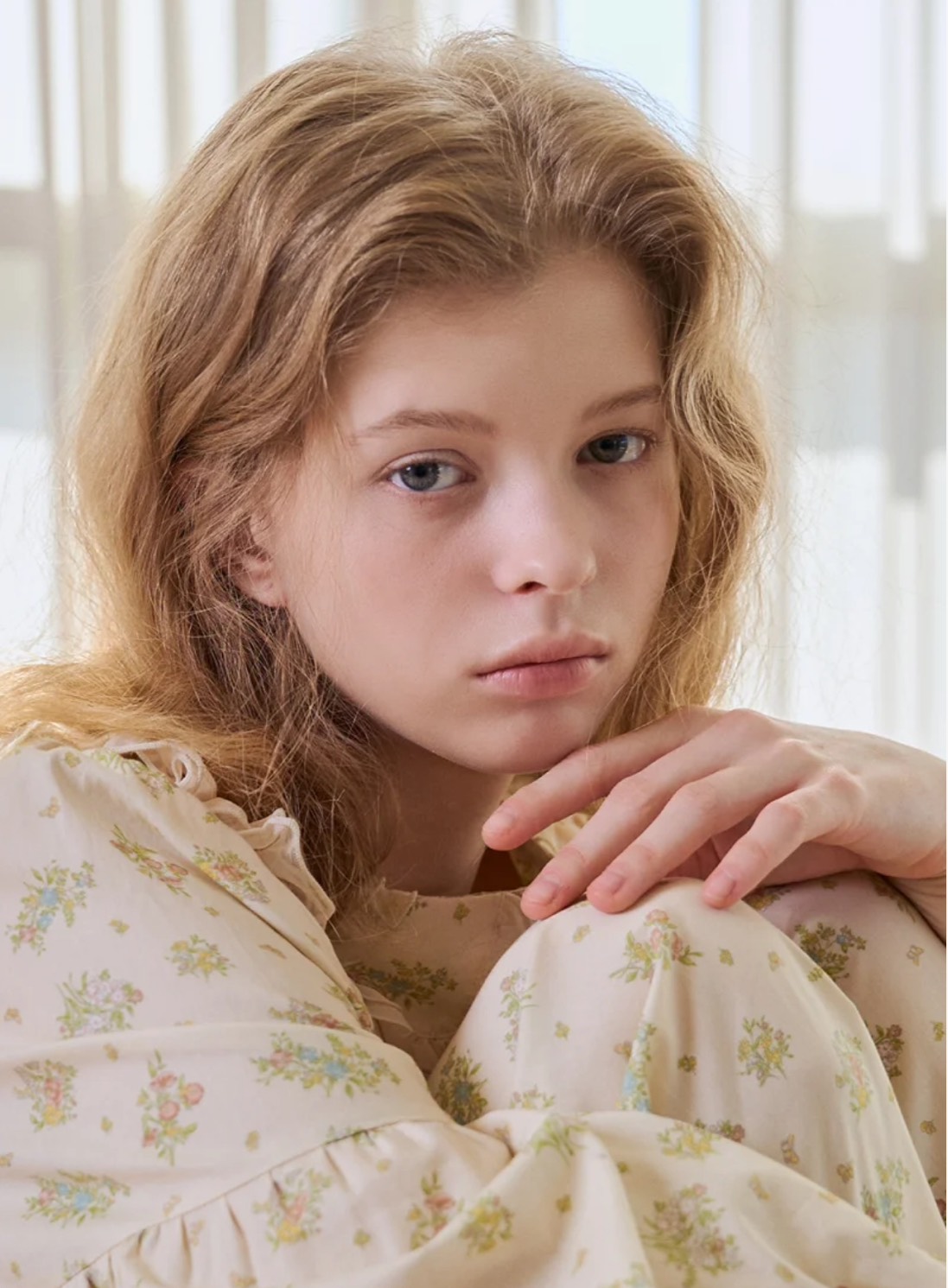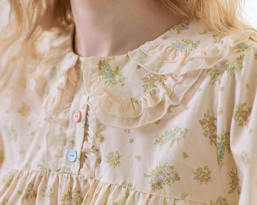 細緻的小碎花鋪陳在柔霧奶油底色上,