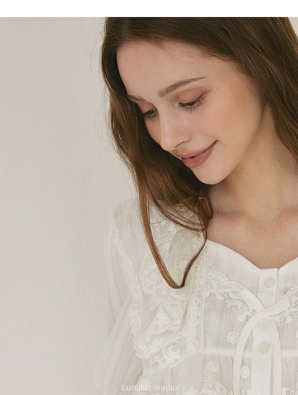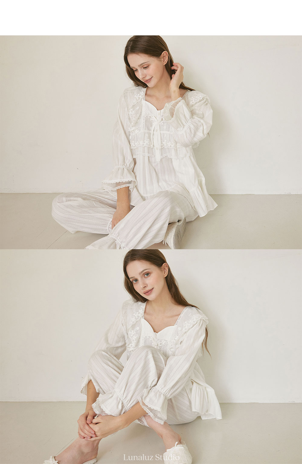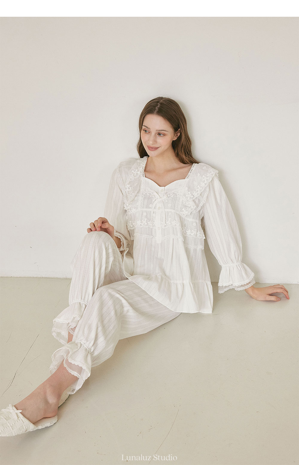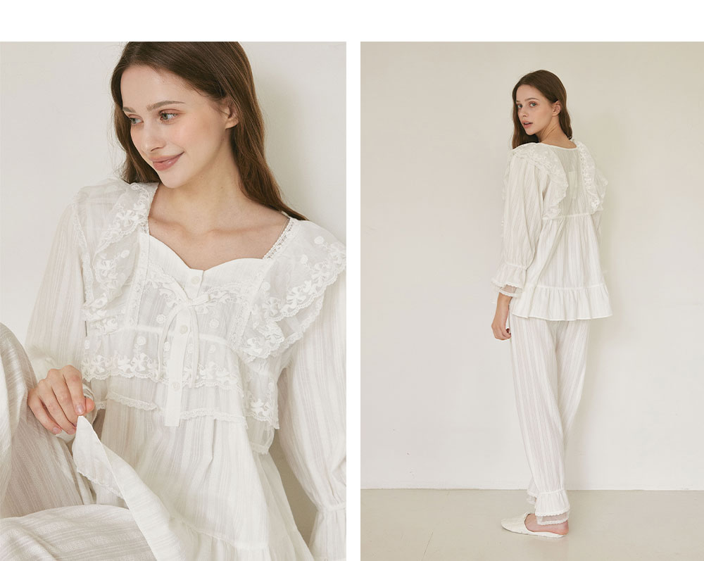 純白蕾絲長袖家居服,藝術品般的細膩設計,