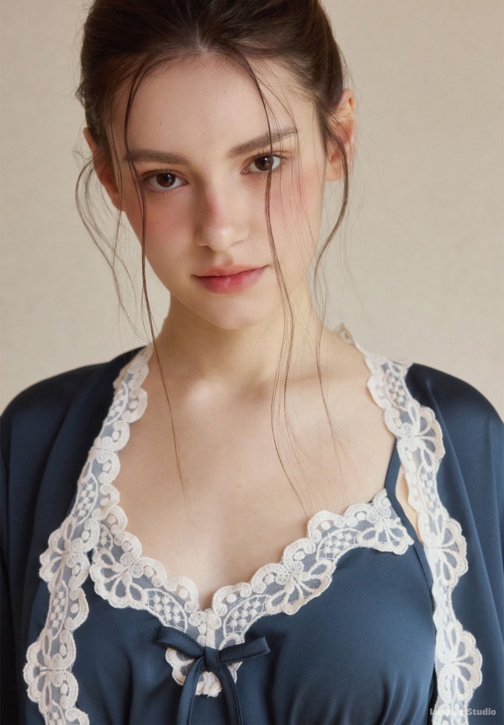 睡衣以自然垂墜的剪裁呈現,