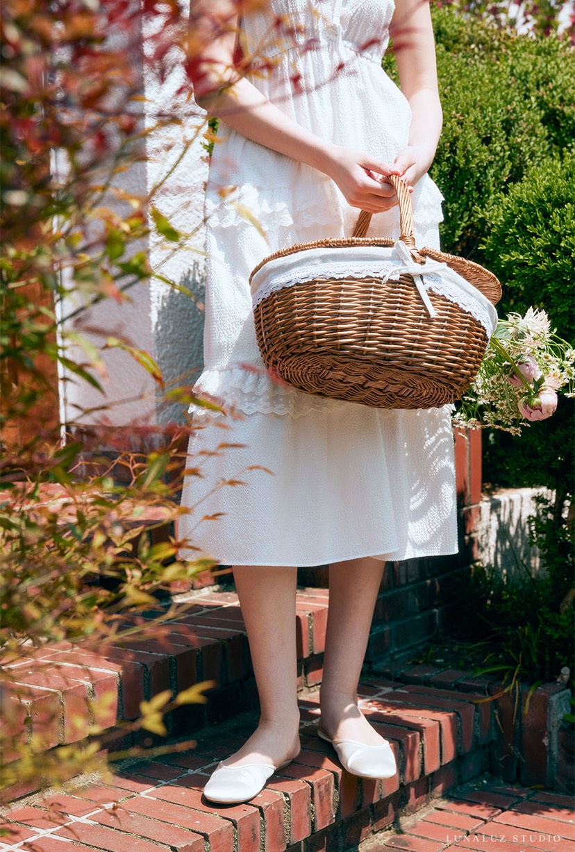 領口與裙擺的蕾絲滾邊精緻細膩,